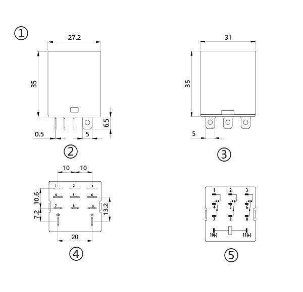 | Resistencia de la bobina (±10%) Ω | 20 | 80 | 1696 | 6814 |