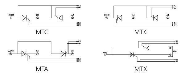 Nuestro módulo tiristor 200A-1000A MTC MTK MTA MTX se utiliza para la conmutación en operaciones de rectificación, calentamiento, control de velocidad, estabilización de voltaje, compensación, inversión, galvanoplastia, soldadura eléctrica y soldadura por puntos, así como para efectuar la carga, descarga y arranque suave de una variedad de dispositivos.